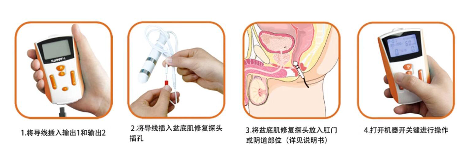 盆底康復治療儀由主機、輸出導線、充電適配器三部分組成